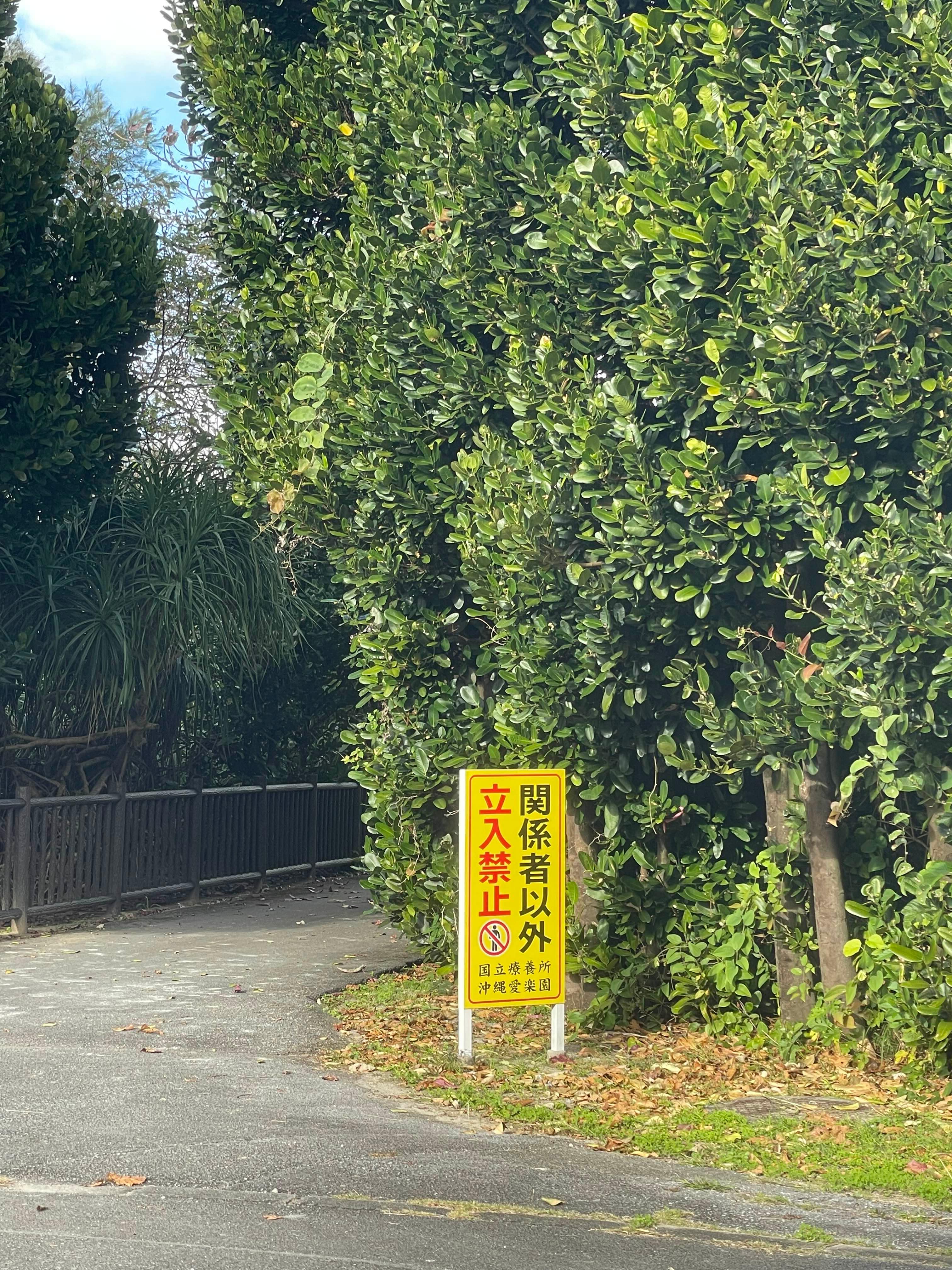 나키진 구스쿠를 나와서는 야가지섬으로 향했다. 모토부 반도 동쪽에 있는 섬인데, 보통은 전망대가 있는 고우리 섬으로 지나가는 중간 과정으로서 생각하기 쉽다. 그러나 섬이라는 특징이 있어선지 야가지 섬 북동부는 나병(한센병)환자들의 마을이 존재한다. 아이라쿠엔(애락원)이라고 하는데, 현재 국립요양소로 운영중에 있다. 장소 위치를 알고는 매우 쉽게 찾을 수 있겠거니 했는데, 막상 근처에 다다르니 일본 치고는 매우 강력한 문구로 ’관계자 외 출입금지‘라고 쓰여 있어서 내가 잘못 들어왔나 했다.