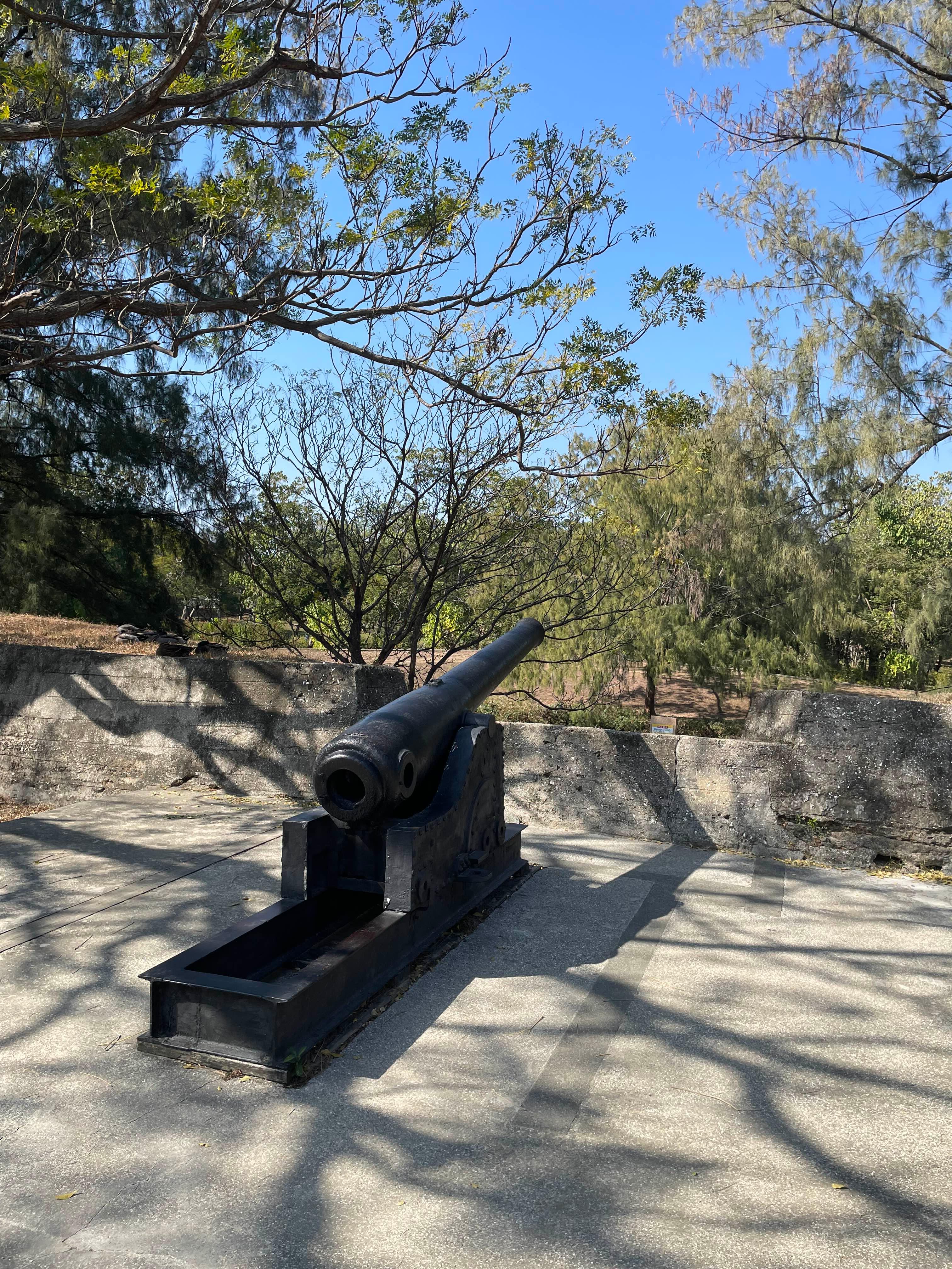성공벽을 지나면 성로렌스 성당이 있다. 여기도 보육원과 함께 하는 성당인 듯 한데, 수요일은 휴일인지 내부 관람이 불가했다. 결국 그 근처의 대천후궁만 둘러보고 나니 12시 반. 점심 먹을 시간이었다. 점심을 먹고자 원래 계획했던 식당이 (하필 또 가는 곳마다 휴일이다.. + 여긴 수요일 많이 쉰다) 쉬는 날이라 그 옆 식당에서 좀 과하게 단 우육면을 먹고 억재금성으로 향했다. 억재금성은 안평고성에서 직선거리로는 가깝지만 해안가를 돌아가야하기 때문에 자전거로 찾아가게 되었다. 억재금성은 청나라 후기 외국군의 대만부 침략에 대응하기 위해 1874년 심보정에 의해 만들어진 포대로서, 중간에 대포 파손 및 성 미사용으로 방치되었으나 대략 당시의 모습 비슷하게 복원하고 모형 포대를 전시하고 있다.