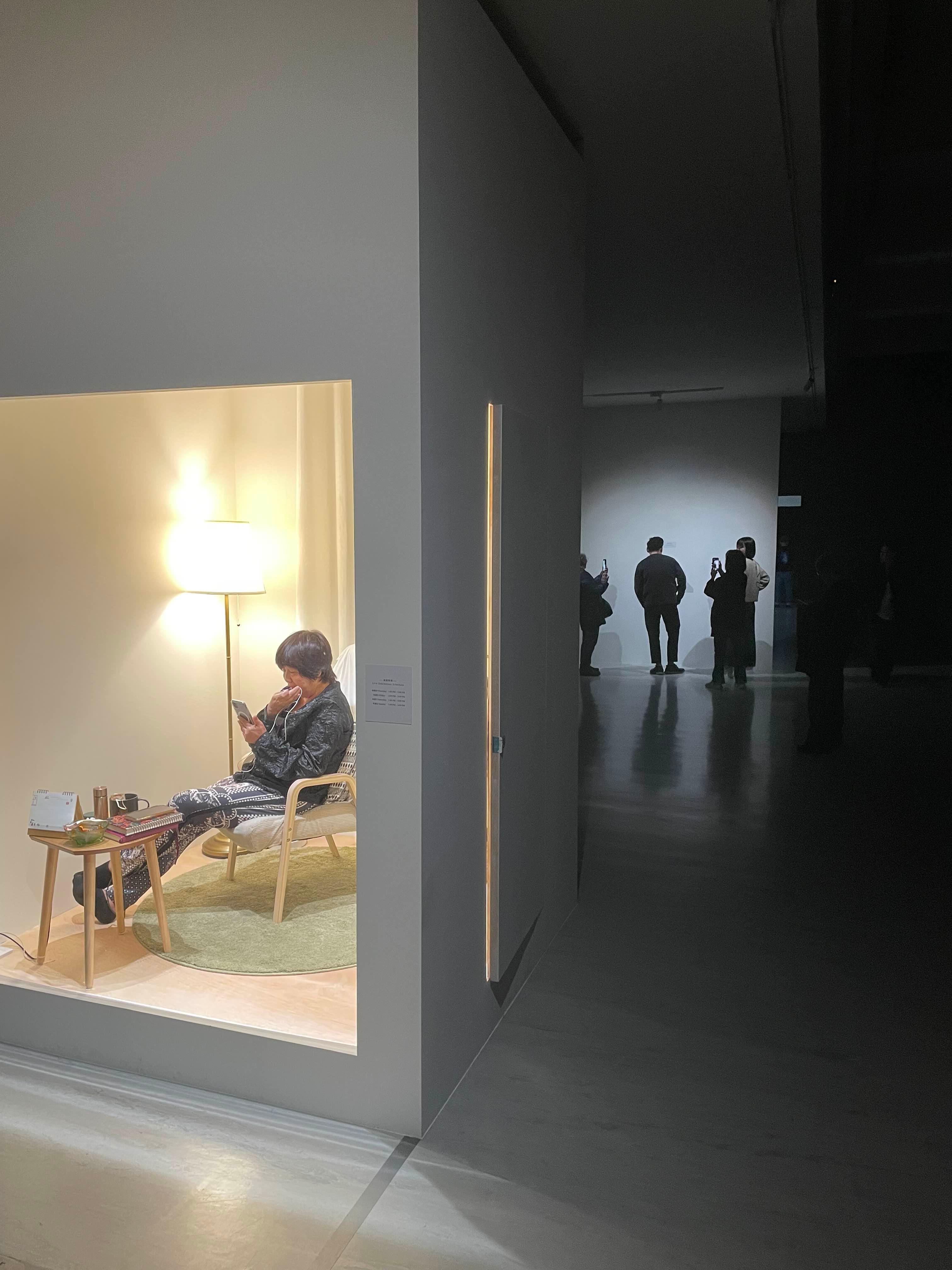 위 사진은 얇은 막을 사이에 두고 프로젝터 영상을 재생하면서도, 뒤에는 사람 모형마냥 인형들이 바닥에 깔려있다. 조명이 영상에 맞게 터지는데, 마치 전투 과정에서 터지는 폭탄 불빛같은 느낌을 자아낸다. 또한 뒤에 있는 앉은 자리가 관객들이 보고 있는 것과 동일하다보니 또 한번 생각할 거리를 던지는 것 같은 전시. 전쟁과 그 속의 사람들의 삶이지 않을까 싶은 전시였다.