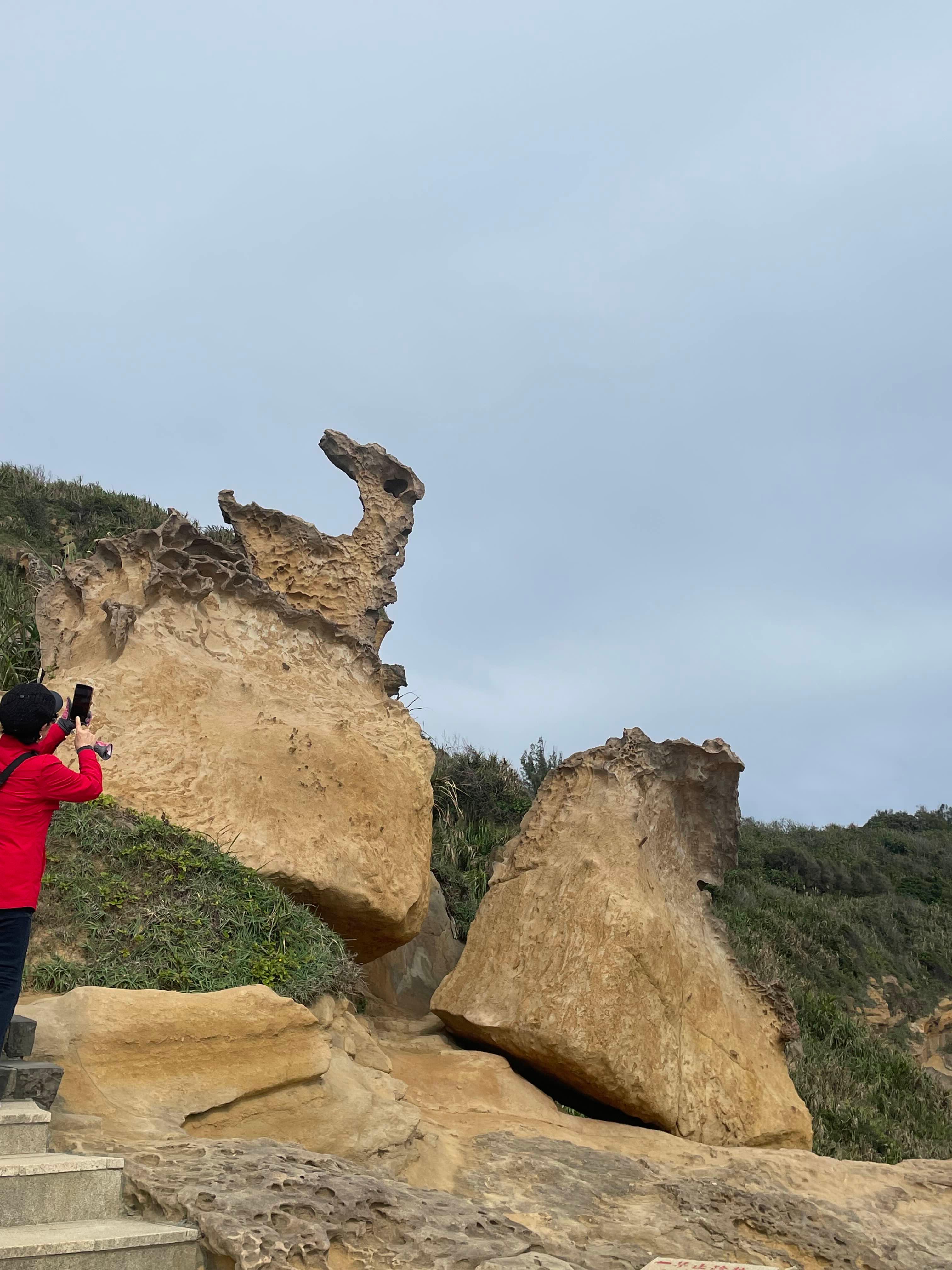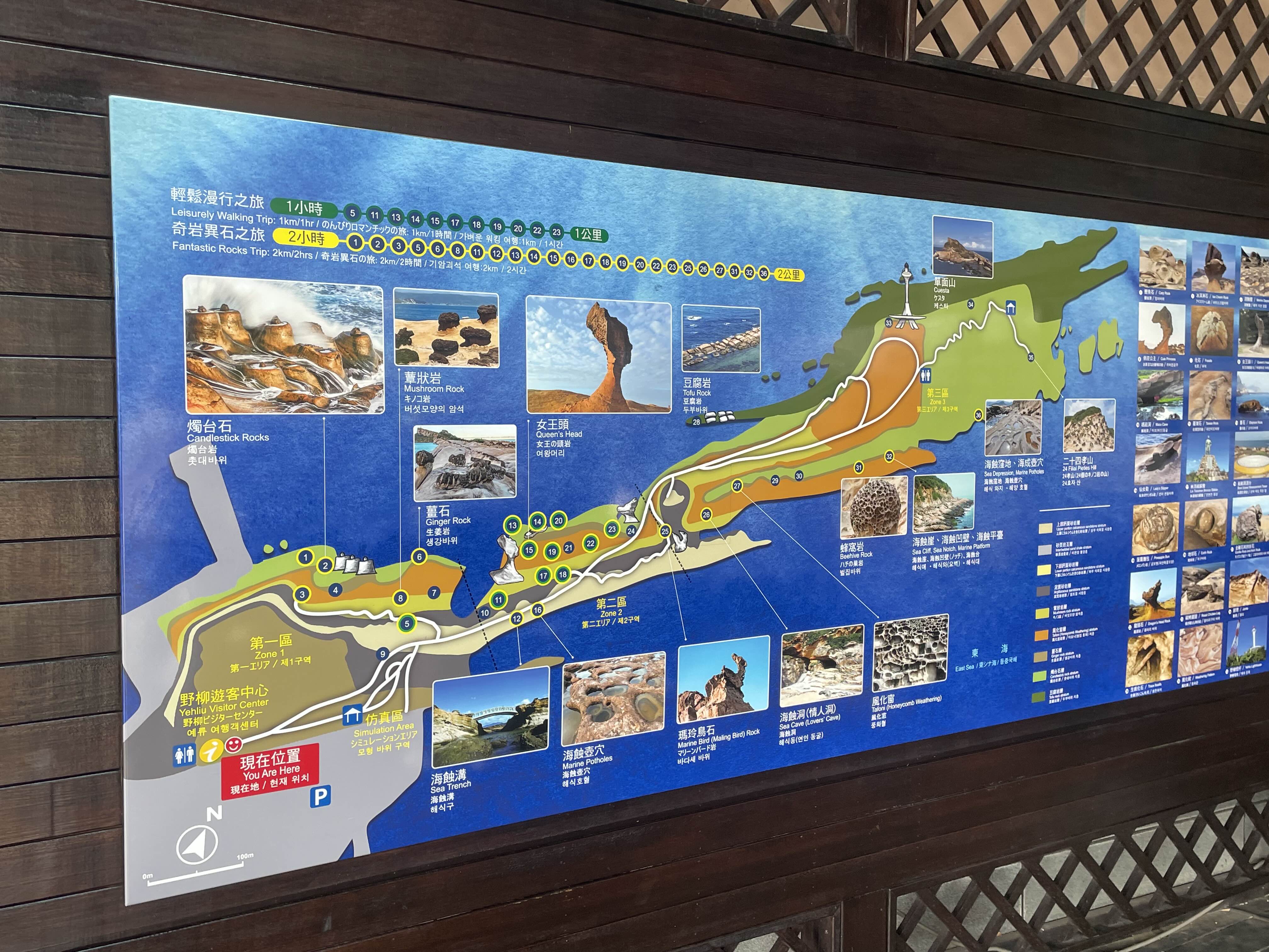 예류지질공원은 다른것보다도 저 (클레오파트라) 여왕의 머리 보러 많은 사람들이 간다. 내 기준으로도 바다는 오키나와-가오슝 지나며 원없이 봤으니 굳이 예류지질공원에서 바다는 의미 없고, 저 여왕의 머리가 가장 흥미로운 장소였다. 그래서였는지, 행로를 잘못짰다.. 1구역 -> 2구역 순으로 넘어가서 여왕의 머리를 봤어야 했을 것 같은데, 그냥 무작정 사람들 가는 대로 2구역으로 들어간 것;; 물론 뭘 먼저 보느냐는 상관없기는 하다. 중간에 의인기념상을 지나 사진 기준 18번쪽으로 크게 한바퀴 돌면 바다와 함께 몇몇 주요 바위들을 볼 수 있다.