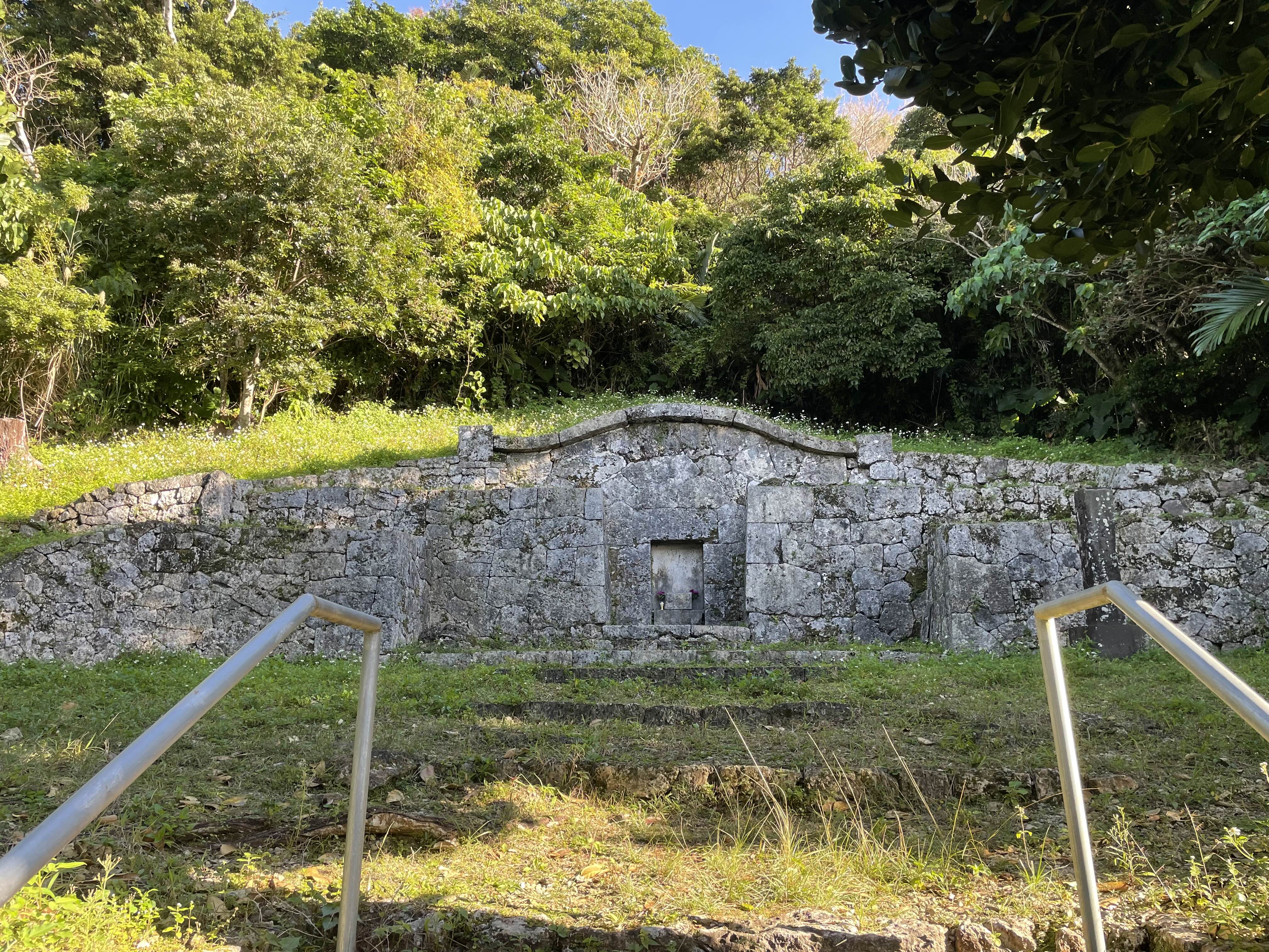 이 성을 증축한 인물로 고사마루(護佐丸)라는 인물이 전해진다. 중국식 이름은 모국현(毛國縣)이라고 하는데, 나카구스쿠 말고도 아래에 나올 자키미 성주로서 성의 개축에도 관여하였다고 한다. 그는 모반했다는 모함에 토벌대가 오자 자결로 생을 마감했다고 전한다. 그의 무덤이 차로 3분 거리의 나카구스쿠 성 근처에 있더라. 그의 무덤은 현존하는 최고(最古)의 오키나와 전통식 묘제 양식을 보이고 있다는 것으로도 흥미로운 지점.